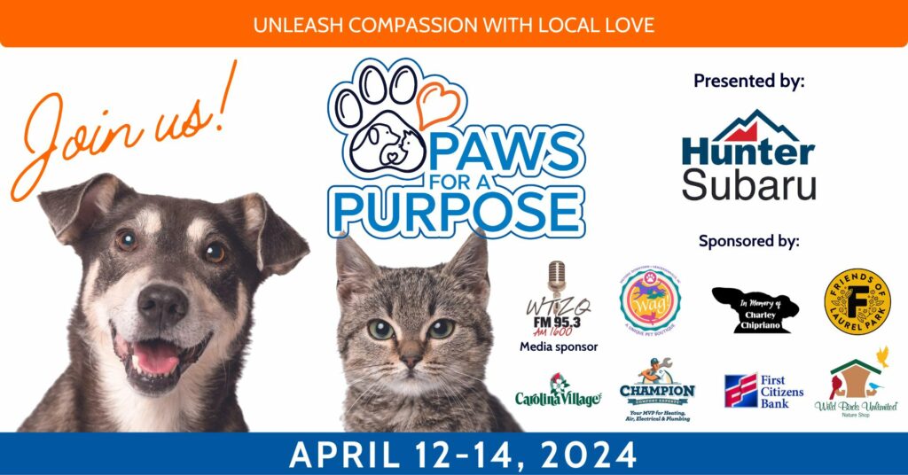 Thank you to our presenting sponsor, Hunter Subaru, media sponsor WTZQ Radio, and our event sponsors: Wag! A Unique Pet Boutique, First Citizens Bank, Friends of Laurel Park, Champion Comfort Experts, Carolina Village, Wild Birds Unlimited and the Chipriano family.