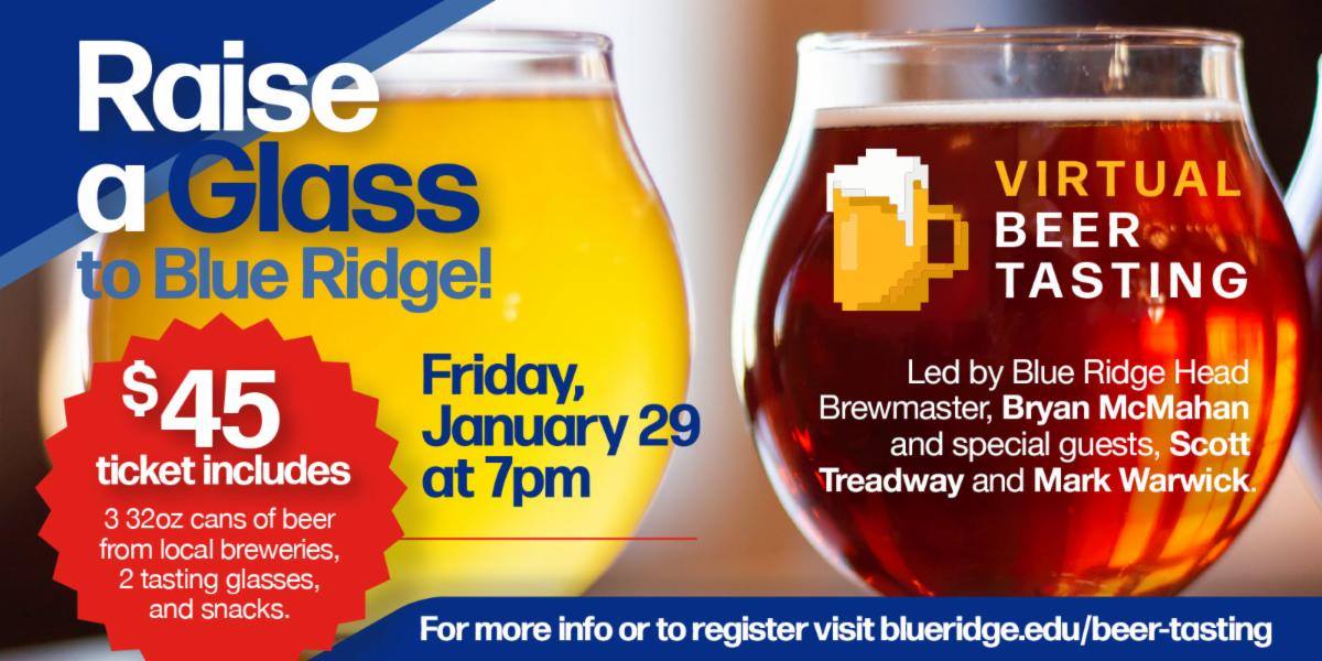 Your ticket includes three 32 oz. cans of beer from local breweries, two tasting glasses and snacks. Tickets are on sale now, and you can get all the details on our website by copying the link https://www.blueridge.edu/…/educational-foundation…/…